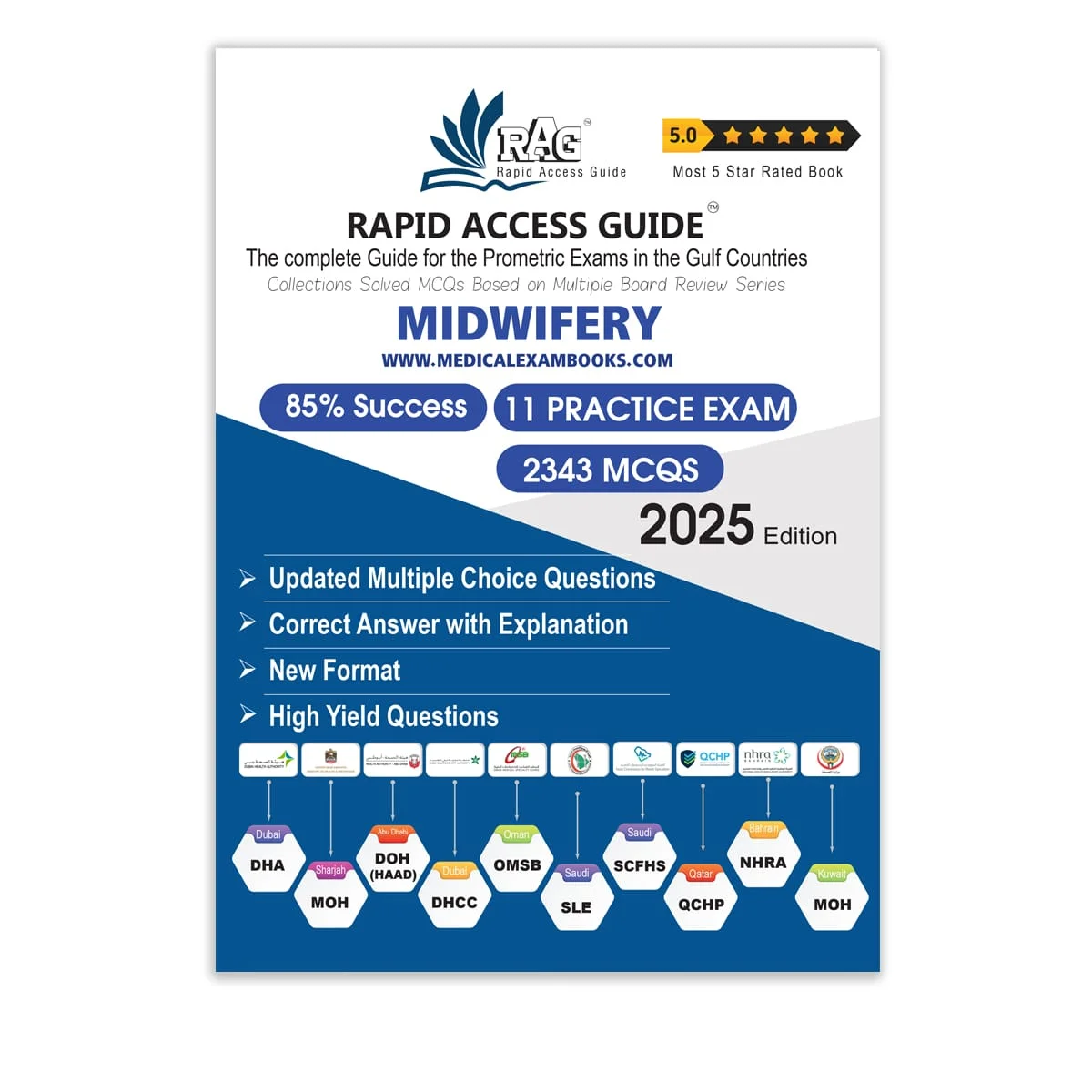Midwifery Prometric Exam MCQ 2025 has been developed by our professional team; Rapid Access Guide is the best seller book for all Gulf Countries Exams since 2000. It has an array of all topics; thousands of updated questions with correct answers and explanations certainly will help you to pass the exam at the very first attempt.